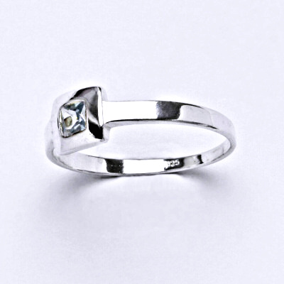 Stříbrný prsten se syntetickým akvamarínu. Velikost zirkonu je 3 x 3 mm. Materiál je stříbro 925/1000. Nabízíme ve velikosti 54.