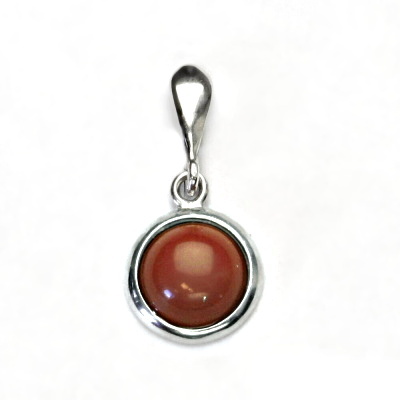 Stříbrný přívěsek je zdoben přírodním karneolem o průměru 8 mm. Celková výška přívěsku je 22 mm včetně úchytu na výšku. Materiál je stříbro 925/1000. Orientační váha je cca 1,33 g. Přívěsek má porvrchovou úpravu čisté rhodium.