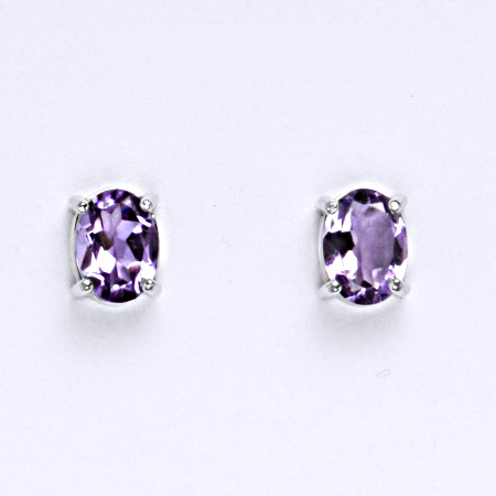 Stříbrné náušnice s přírodním ametystem. Velikost kamene je 7 x 5 mm. Náušnice mají zapínání na šroubek. Materiál je stříbro 925/1000.