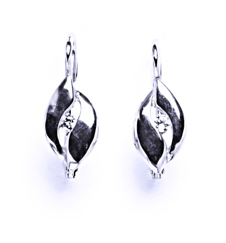 Stříbrné náušnice na patent se zirkonem, šperk, VE 138