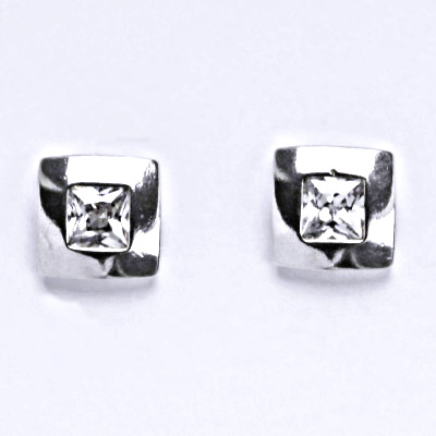 Stříbrné náušnice s čirým zirkonem se zapínáním na puzetu. Materiál je stříbro 925/1000. Náušnice mají povrchovou úpravu čisté rhodium.