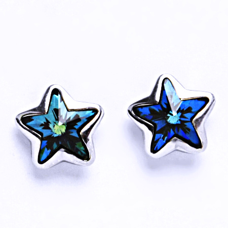 Stříbrné náušnice na šroubek jsou ozdobeny krystalem Swarovski hvězda.Hvězdy mají velikost krystalu 10 mm. Barva bermuda blue modrá měňavá.Tyto šperky mají povrchovou úpravu - čisté Rhodium, které nevyvolává žádné alergické reakce.