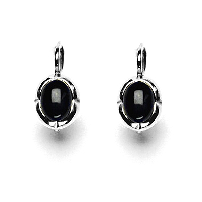 Náušnice ze stříbra ryzosti 925/1000, zdobené přírodním černým achátem 8x6 mm. Orientační hmotnost náušnic je 2,45 g, celková výška včetně klapky 17 mm.