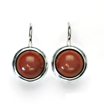 Stříbrné náušnice jsou zdobeny přírodním karneolem o průměru 8 mm. Materiál je stříbro 925/1000. Celková výška náušnice je 16 mm. Náušnice mají zapínání na patent a jsou rhodiované. Orientační váha náušnic je 2,81 g.