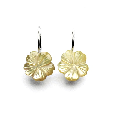 Stříbrné náušnice, přírodní žlutá perleť, kytička 10 mm, NK 1183
