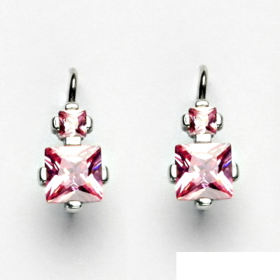 Stříbrné náušnice jsou zdobeny růžovými zirkony o rozměru: 6x6 a 3x3 mm. Náušnice mají zapínání na klapku a jsou rhodiované. Materiál je stříbro 925/1000. Celková výška náušnice je 16 mm. Orientační váha náušnic je 2,76 g.