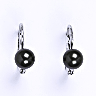 Stříbrné náušnice se Swarovski black perlou. Průměr perly je 6 mm. Materiál je stříbro 925/1000. Materiál má povrchovou úpravu čisté rhodium.