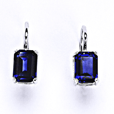 Stříbrné náušnice se syntetickým tmavě modrým zirkonem, NK 1446