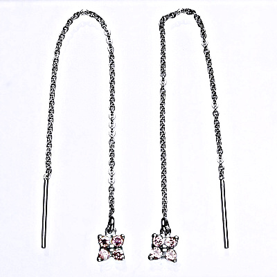 Stříbrné řetízkové protahovací náušnice s růžovými zirkony,kytička,NŘ VE 246