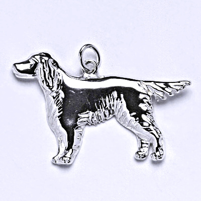 Stříbrný přívěšek ve tvaru Irského setra. Přívěšek je vyroben ze stříbra ryzosti 925/100. Velikost přívěšku je cca 19 mm na výšku a 30 mm na šířku.
