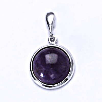 Stříbrný přívěsek s přírodním ametystem o rozměru 12 mm. Materiál je stříbro 925/1000. Celková výška přívěsku je 26 mm.