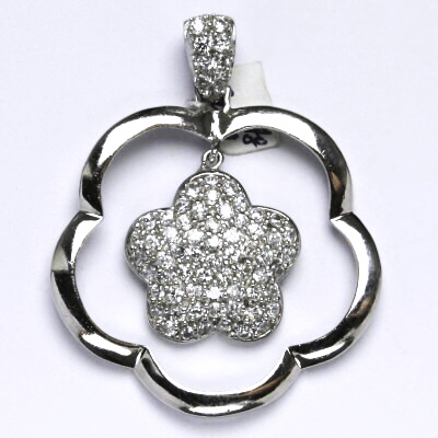 Stříbrný přívěsek s čirými zirkony. Celková výška přívěsku je 41 mm. Orientační váha je 6,09 g. Materiál je stříbro 925/1000.