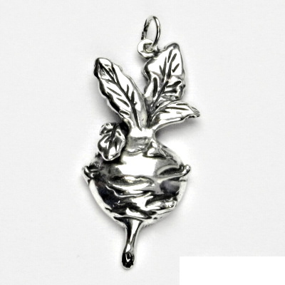 Stříbrný přívěsek s patinou - kedlubna. Materiál je stříbro 925/1000. Rozměr přívěsku je 36 mm včetně očka na výšku a 15 mm na šířku. Orientační váha přívěsku je 3,59 g.