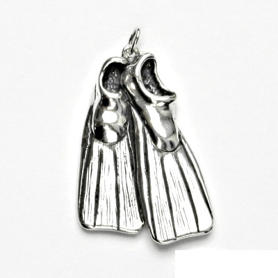 Stříbrný přívěsek - ploutve s patinou. Materiál je stříbro 925/1000. Rozměr přívěsku je 37 mm včetně očka na výšku a 21 mm na šířku. Orientační váha přívěsku je 6,44 g.