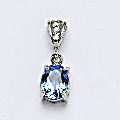 Stříbrný přívěšek se syntetickým akvamarínem. Velikost akvamarínu je 9x7 mm. Délka přívěšku i s ouškem je 21 mm.