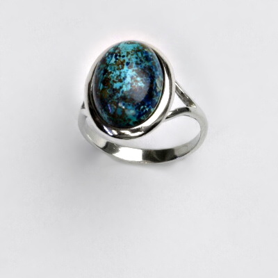Stříbrný prsten, přírodní chryzokol, T 1454
