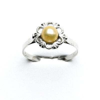 Stříbrný prsten, přírodní říční perla lososová, T 1525