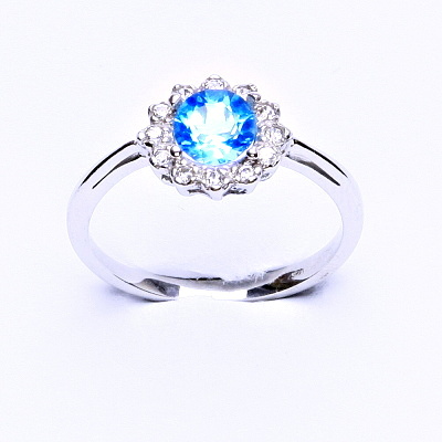 Elegantní stříbrný prsten ve stylu populárního modelu Kate zdobí přírodní topaz swiss, po jehož obvodu jsou zasazeny zirkony čiré barvy. Prozařte své dny jasnými odlesky přírodních kamenů, i Vy si zasloužíte trochu toho luxusu. Materiál, z něhož je prsten vyhotoven, je stříbro ryzosti 925/1000, šperk má povrchovou úpravu čisté rhodium. Orientační hmotnost prstenu při velikosti 52 je 1,37 g, průměr kamene 5,5 mm. V nabídce máme také náušnice do sady.