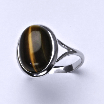 Stříbrný prsten s přírodním tygřím okem o rozměru 14x10 mm. Materiál prstenu je stříbro 925/1000.