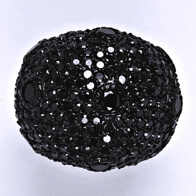 Stříbrný prsten s černými zirkony, 17,51 g, velikost 59,60.