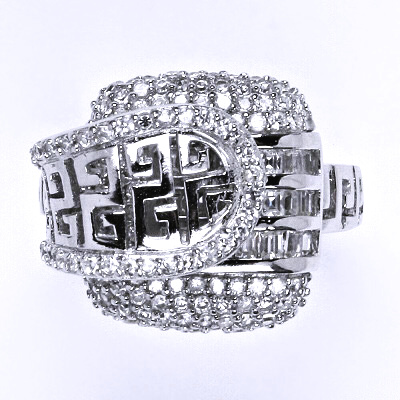 Stříbrný prsten s čírými zirkony. Orientační váha prstenu je 10,75 g.