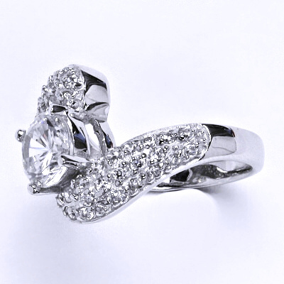 Stříbrný prsten s čírými zirkony. Orientační váha prstenu je 5,98 g.