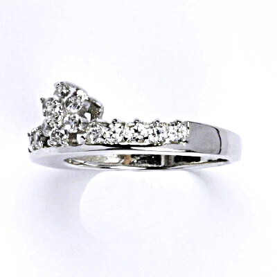 Stříbrný prsten s čirými zirkony. Ryzost stříbra je 925/1000. Hmotnost prstenu je 3,61 g.