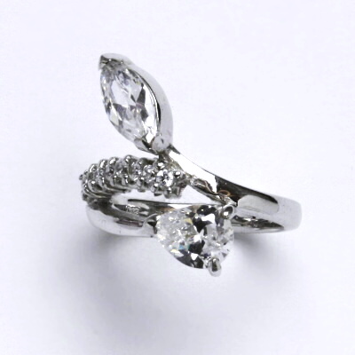 Stříbrný prsten s čirými zirkony, váha je 5,69 g