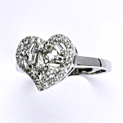 Stříbrný prsten s čirými zirkony ve tvaru srdce Ryzost stříbra je 925/1000. Hmotnost prstenu je 4,04 g.