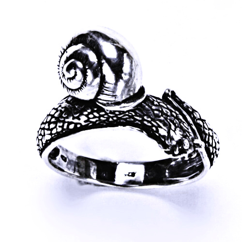 Stříbrný prsten s patinou, šnek, prstýnek ze stříbra, stříbro, T 857