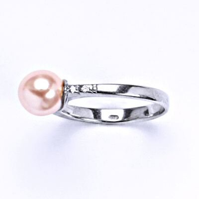 Stříbrný prsten s umělou perlou růžovou.