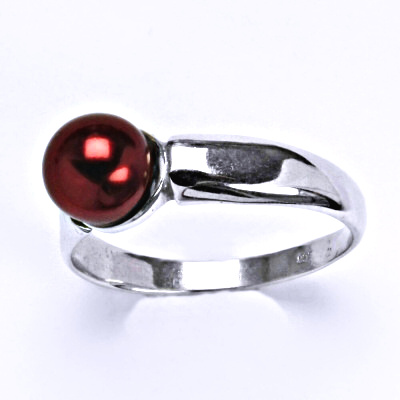 Stříbrný prsten s umělou perlou vínovou. Velikost perly je 8 mm. Materiál je stříbro 925/1000.Velikost prstenu je 54 53 57 61.