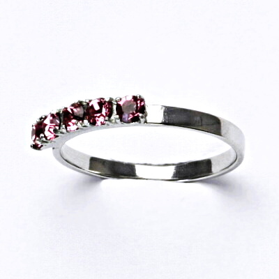 Stříbrný prsten je zdoben Swarovski krystaly o průměru 3 mm. Barva krystalu je rose. Materiál je stříbro 925/1000.