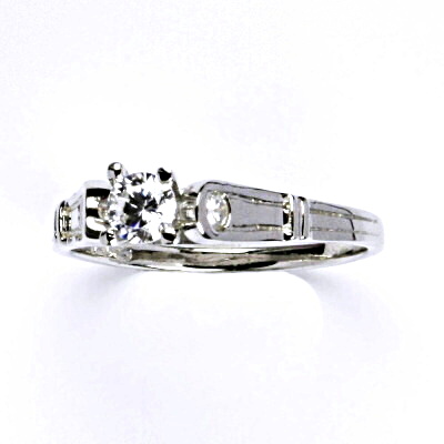 Stříbrný prsten s čirými zirkony. Ryzost stříbra je 925/1000. Hmotnost prstenu je 3,26 g.