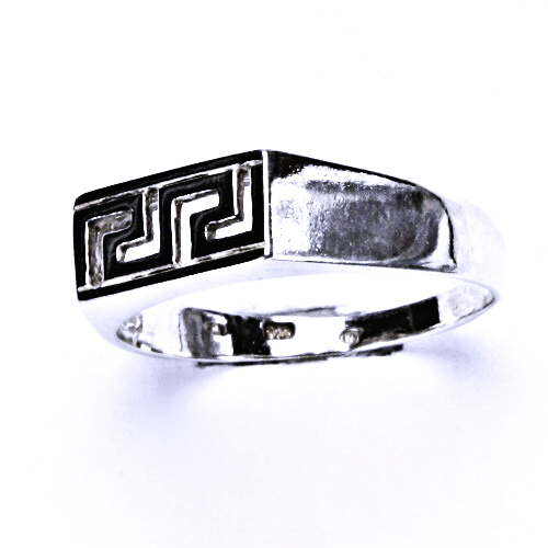 Stříbrný prsten - řecký motiv. Materiál je stříbro 925/1000. Orientační váha prstenu ve velikosti 54 je 2,86 g. Šířka horní části prstenu je 6 mm.