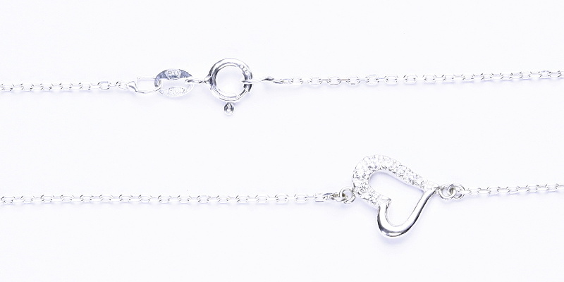 Stříbrný řetízek, náhrdelník se srdíčkem, čiré zirkony, NH 1322